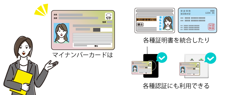 マイナンバーカードは個人的な使用方法以外に、カードに搭載されている機能によりビジネスにおける認証サービスの1つとして活用することもできるのです。